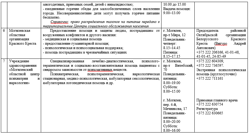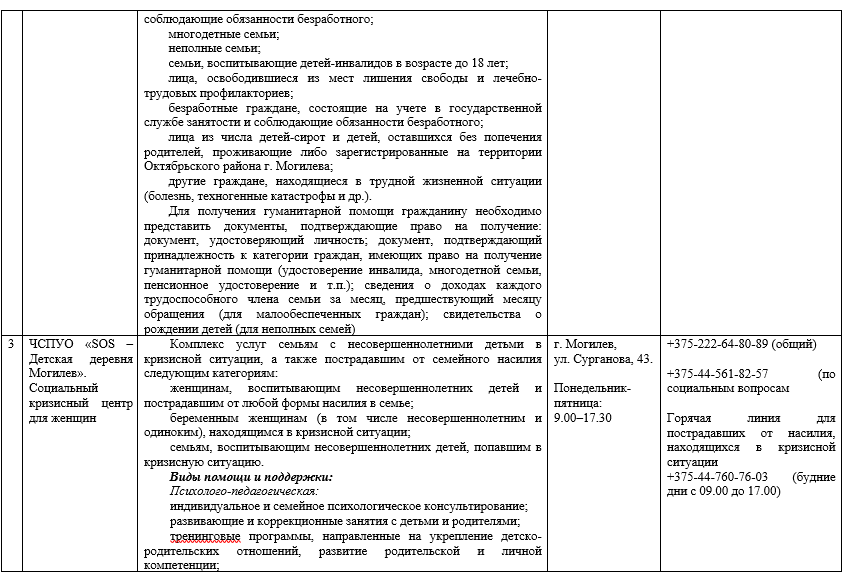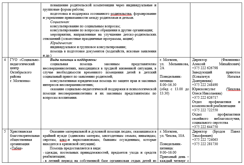 ПЕРЕЧЕНЬ учреждений и организаций, в том числе общественных, Октябрьского района г. Могилева,оказывающих помощь семьям с детьми, оказавшимся в трудной жизненной ситуации