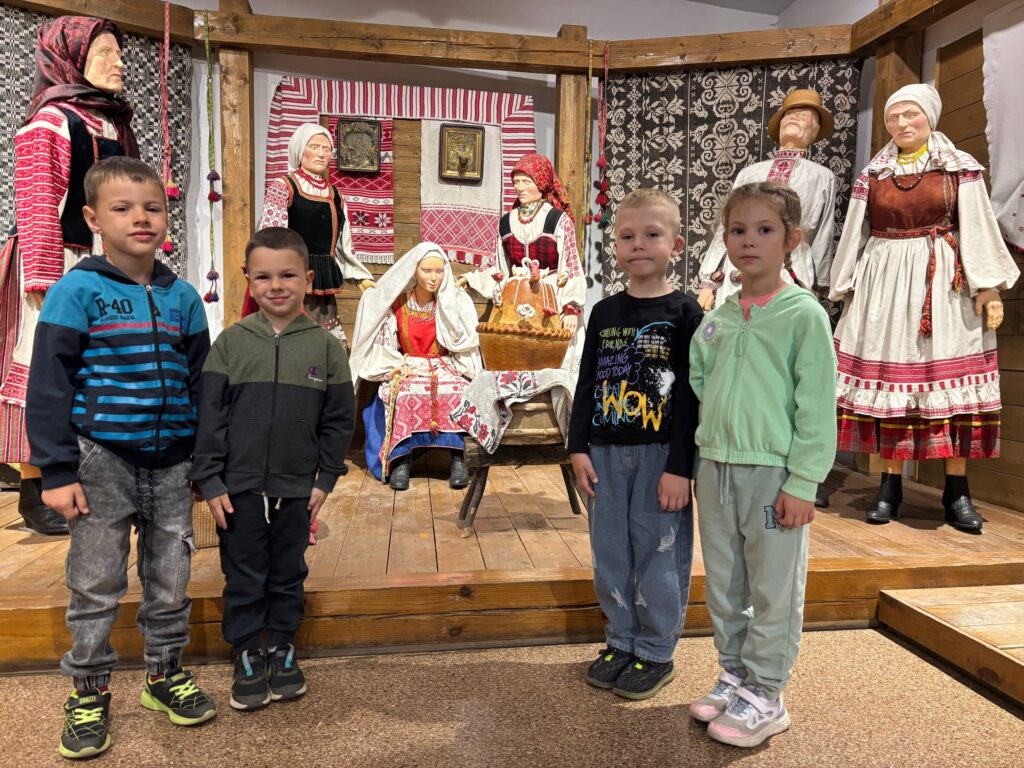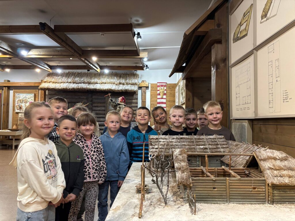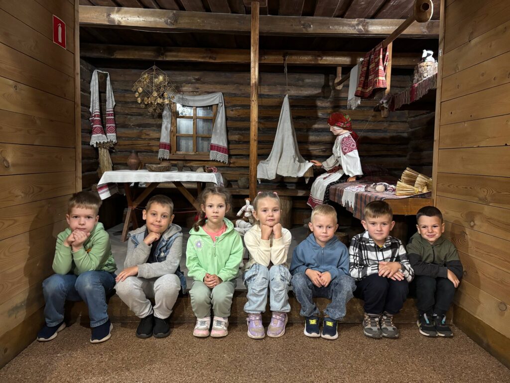 Экскурсовод рассказала дошкольникам о жизни наших предков. Ребята узнали, что деревни раньше были небольшими и с замкнутыми дворами. Особый интерес у воспитанников вызвало устройство традиционного крестьянского дома. Им объяснили, что жилище состояло из двух частей: самой избы и холодных сеней. Дом строили из бревен, а крышу накрывали соломой. Внутри избы каждый угол имел свое строгое назначение. Экскурсовод показала, где находилась печь — главный элемент жилища, «красный угол» с иконами, украшенными вышитыми рушниками, и столом, на котором всегда лежал хлеб. Ребята с любопытством рассматривали предметы быта, инструменты и мебель, узнавая, как жила белорусская семья сто лет назад.