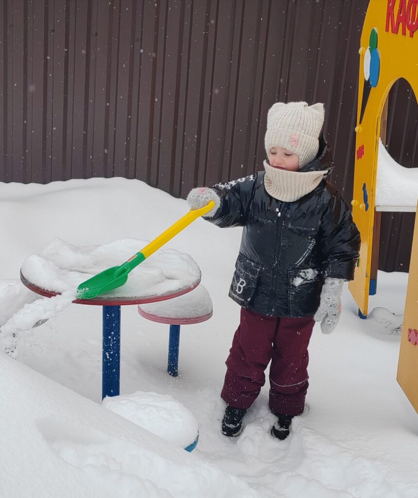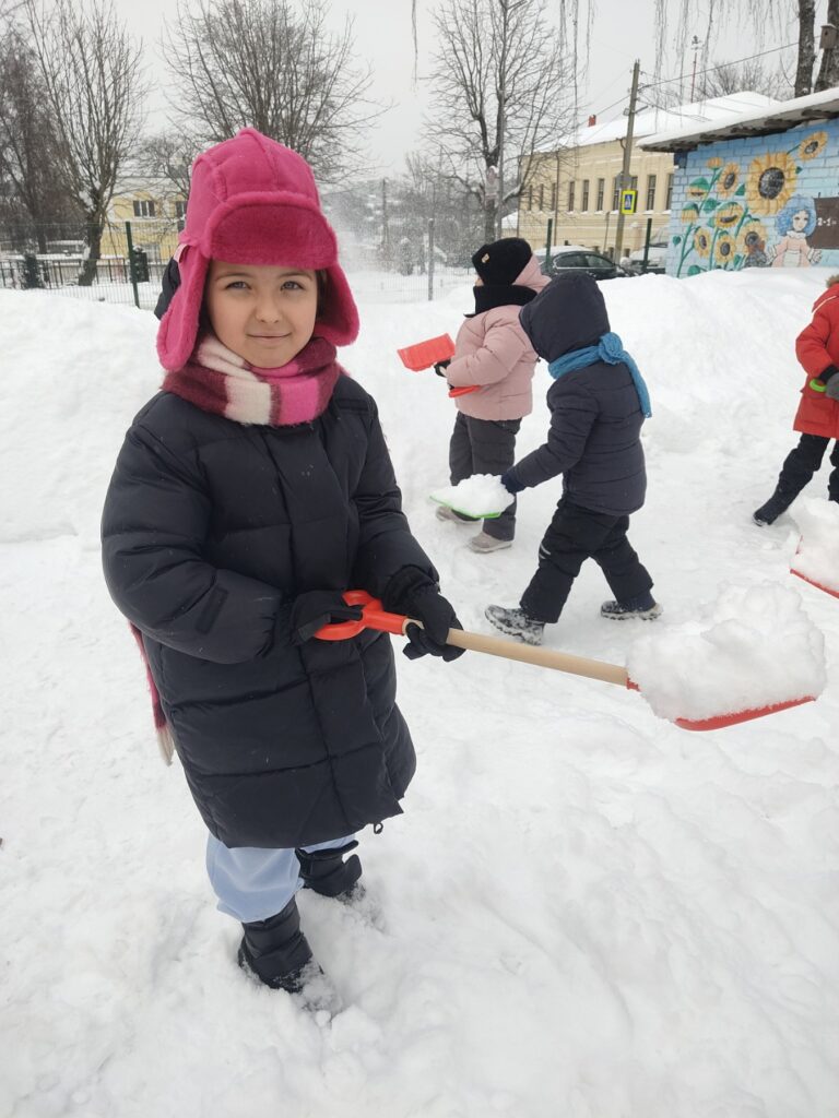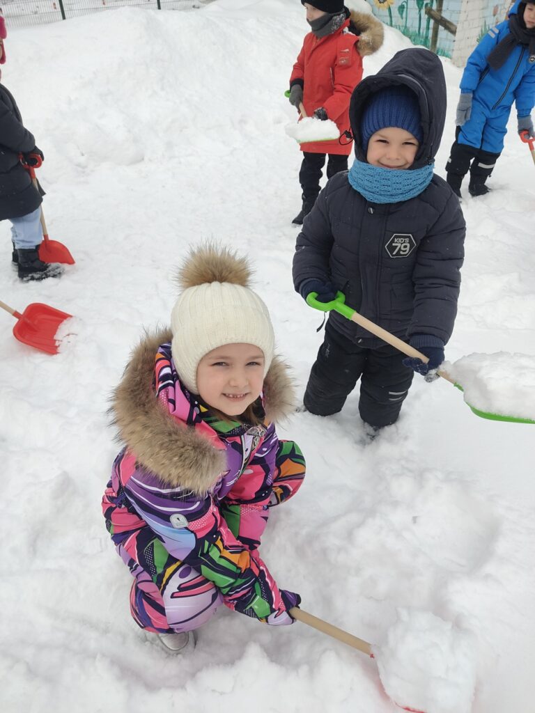 На прогулке наши ребята весело и задорно принимали участие в уборке снега. Все вместе дружно расчищали свои участки и дорожки. Сколько было радости у детей — смеха и улыбок! Всем было очень приятно увидеть результаты своего труда.