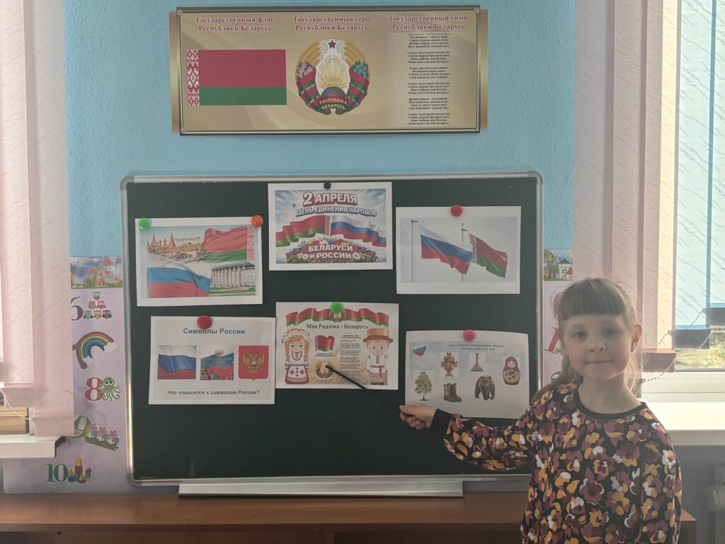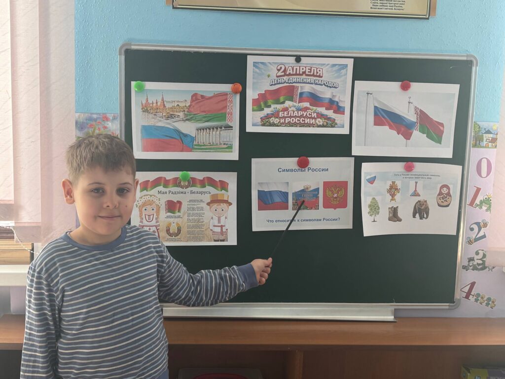 Ежегодно 2 апреля в Беларуси и в России на государственном уровне отмечается День единения народов двух стран. Воспитанники старшей и средней групп с большим интересом знакомились с государственной символикой Российской Федерации, рассматривали национальные костюмы народов России, закрепили свои представления об обычаях и праздниках наших братских народов, а также беседовали о дружбе между людьми всех стран и национальностей.